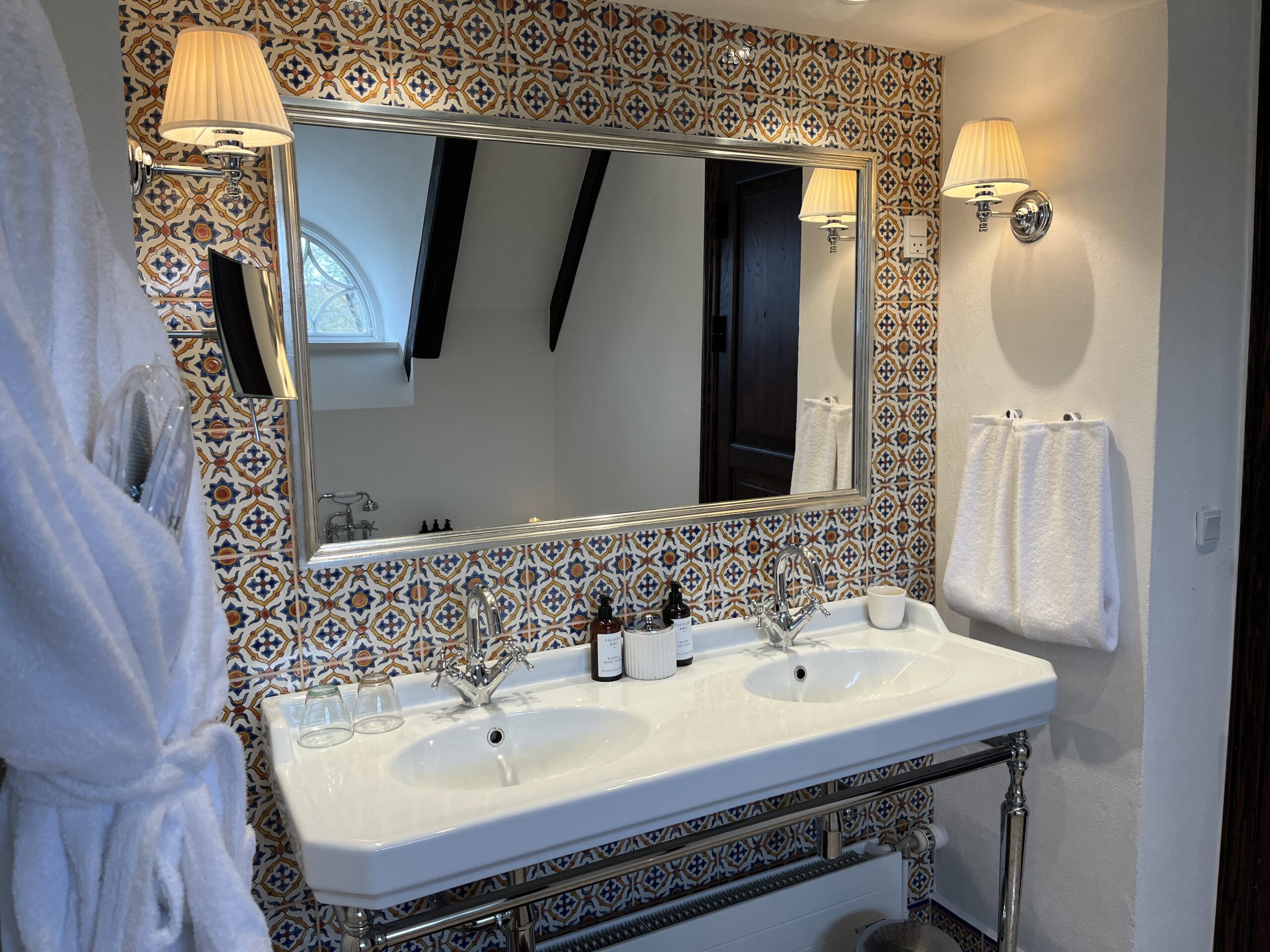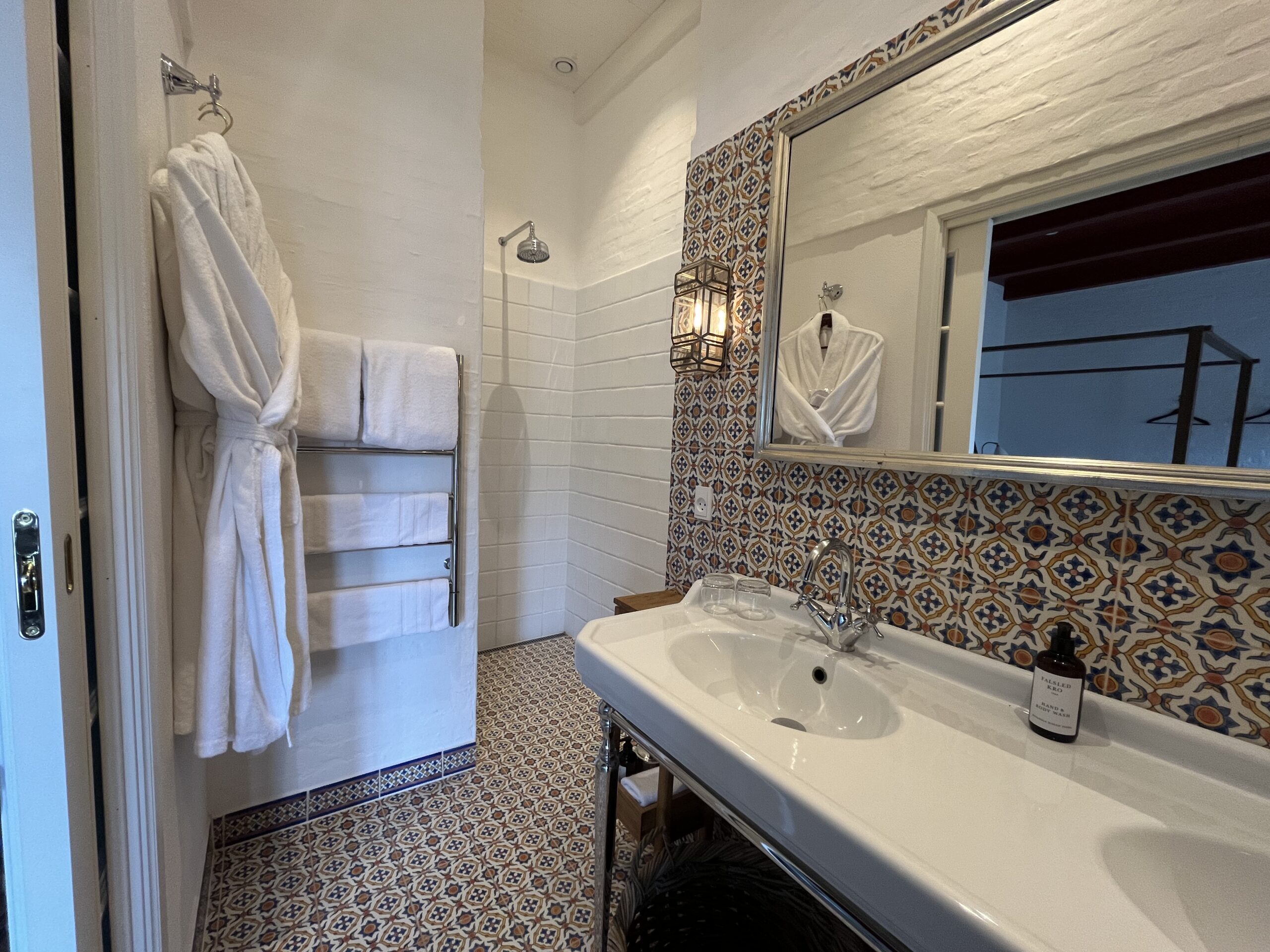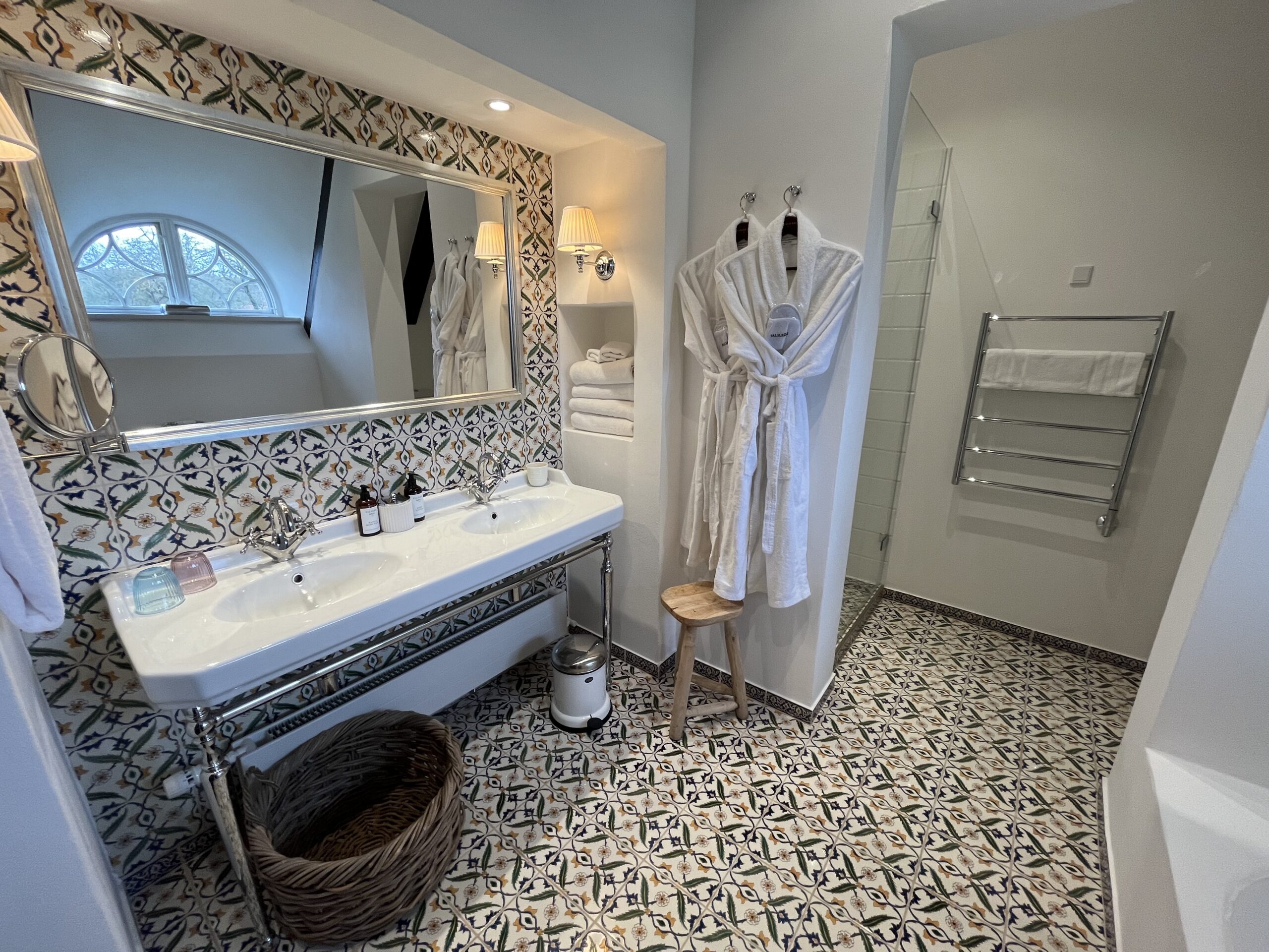Hvert af vores unikt designede værelser på Falsled Kro tilbyder en karakteristisk oplevelse, komplet med elegante badeværelser med luksuriøse badekar, separate brusere og udsøgte førsteklasses bekvemmeligheder, prydet med smukke fliser.
